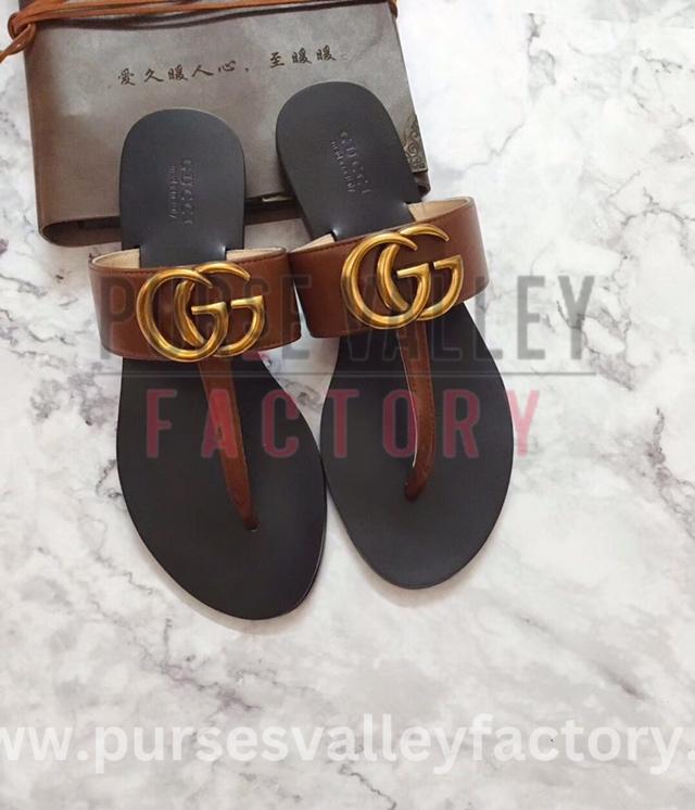 GUCCI MARMONT LEATHER SANDAL BROWN ‎612138