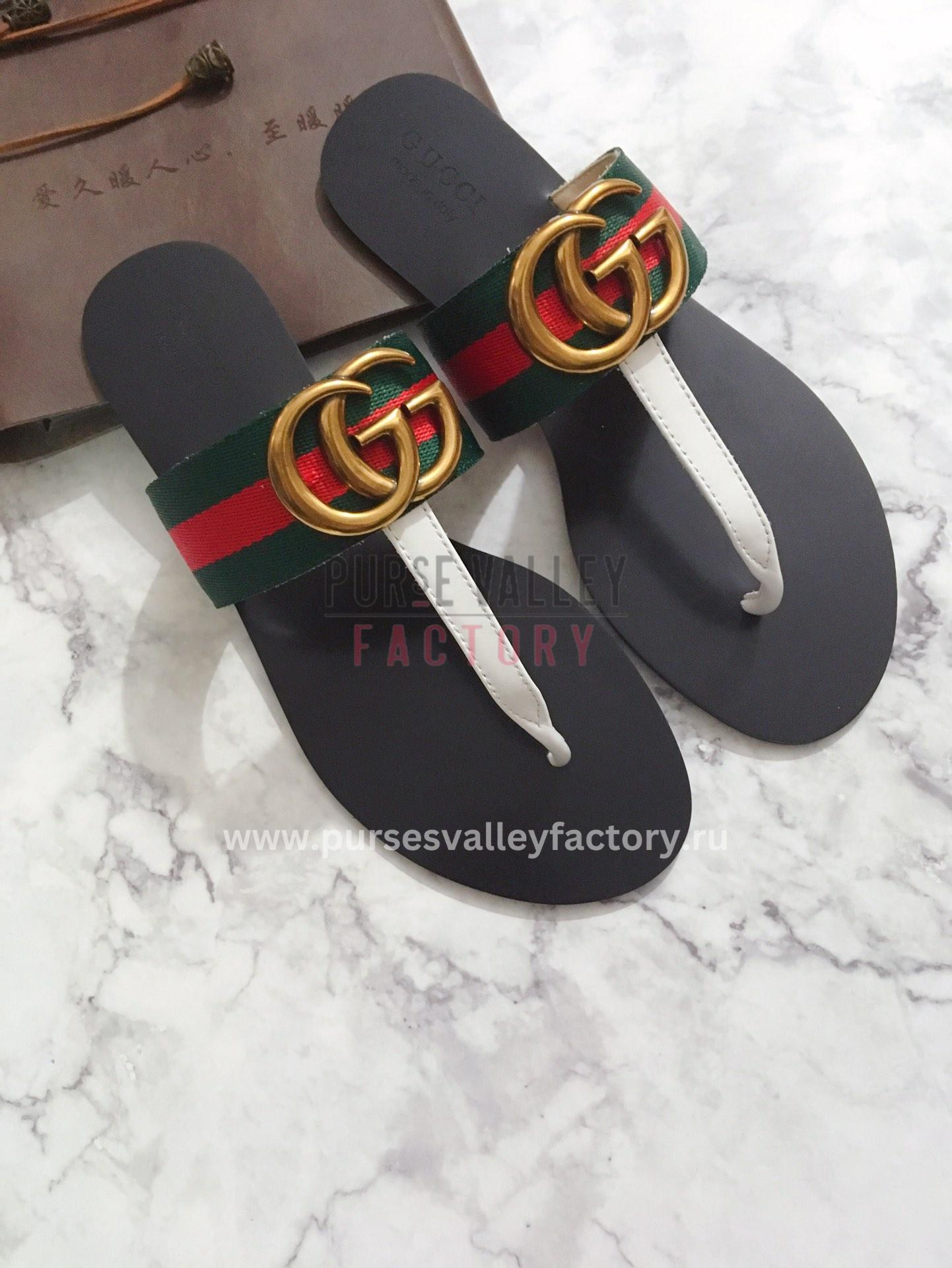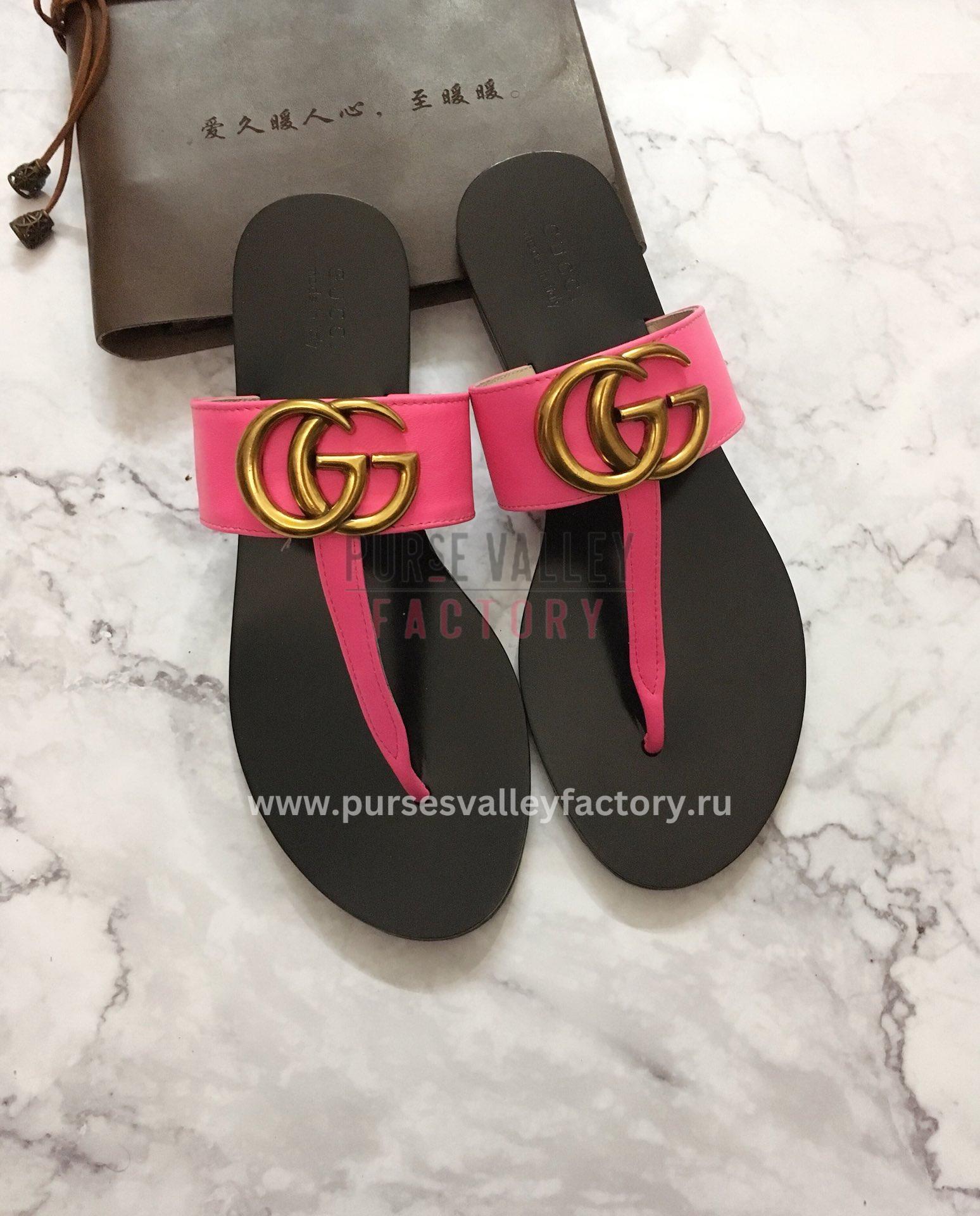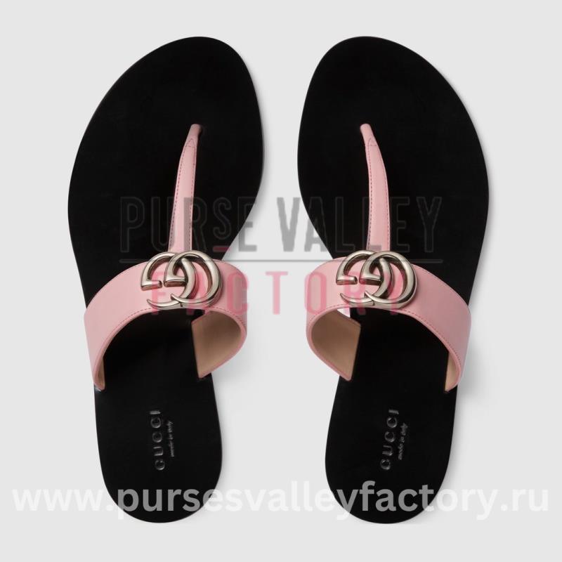 GUCCI LEATHER THONG SANDAL WITH DOUBLE G PINK 497444