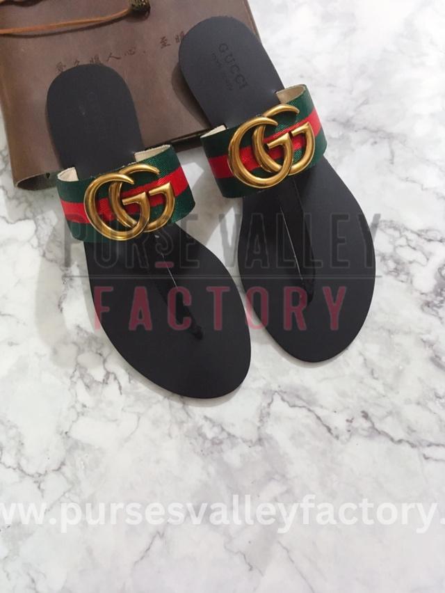 GUCCI MARMONT LEATHER SANDAL GREEN AND RED ‎612138