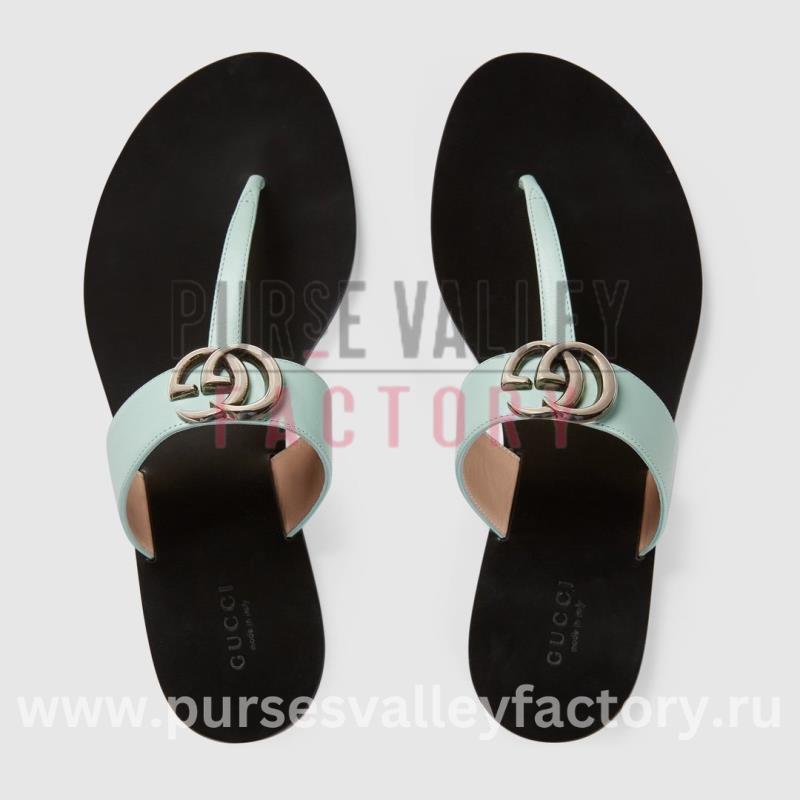 GUCCI LEATHER THONG SANDAL WITH DOUBLE G TURQUOISE 497444