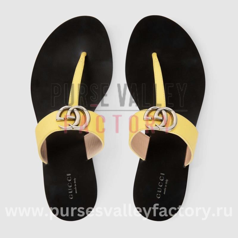 GUCCI LEATHER THONG SANDAL WITH DOUBLE G YELLOW 497444