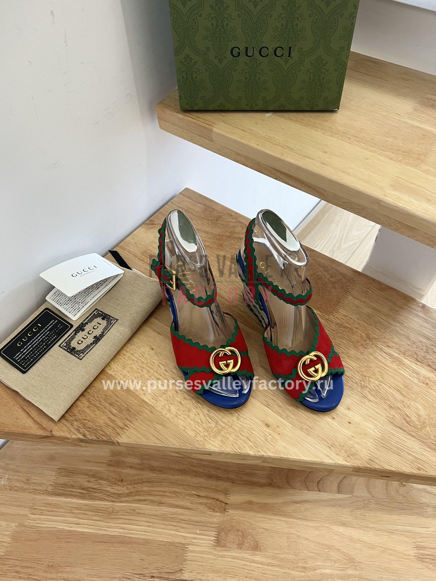 GUCCI MARMONT LEATHER SANDAL RED AND BLUE ‎612138