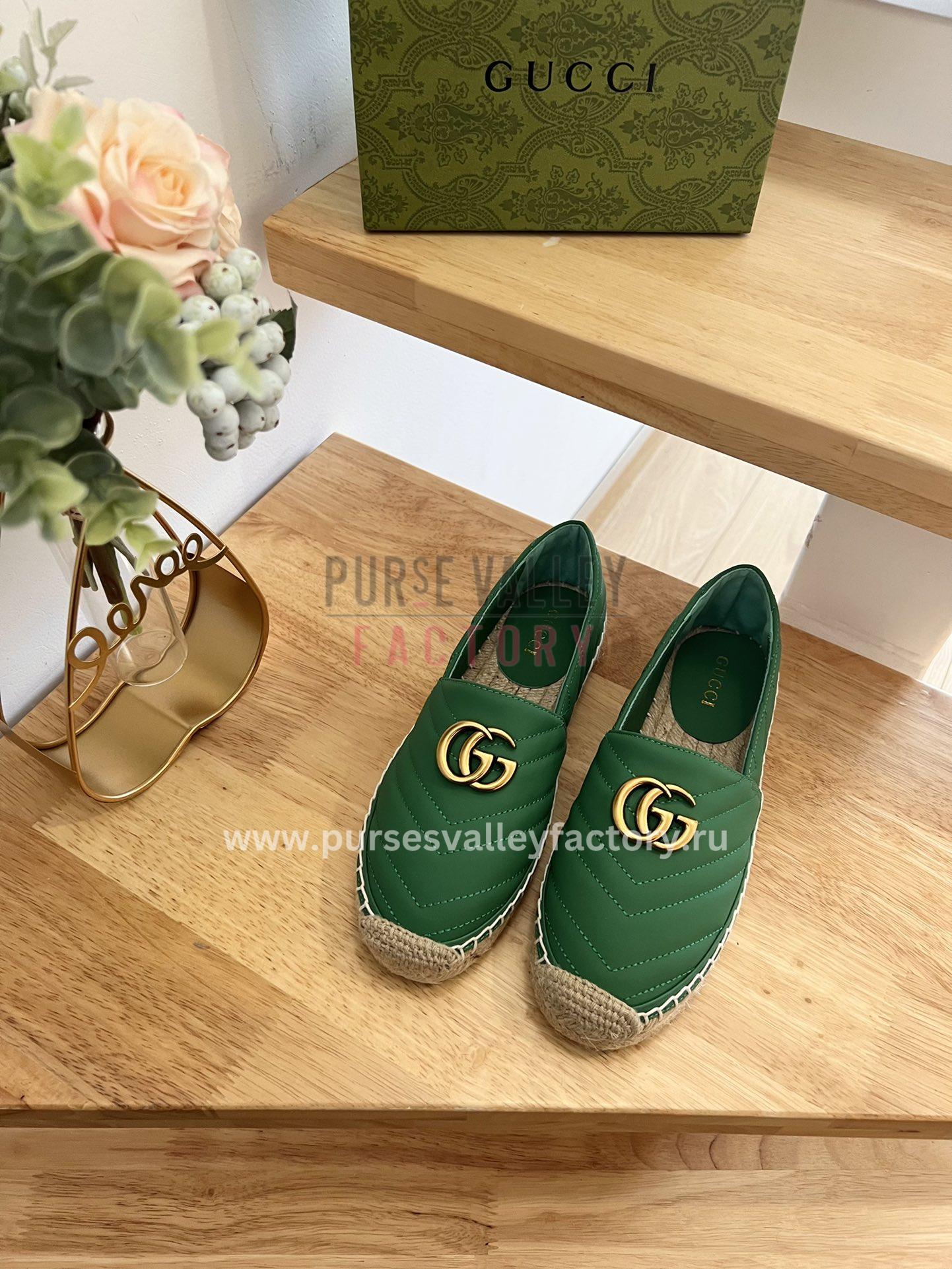 GUCCI LEATHER ESPADRILLE WITH DOUBLE G GREEN 551890