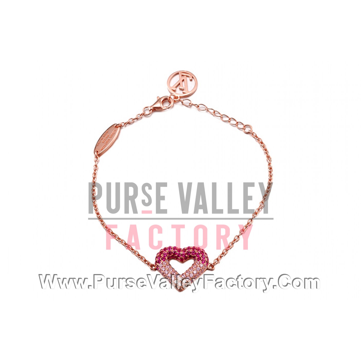 DescriptionAn 18k rose-gold plated charms bracelet with a pink heart charm embellished with crystals for a showy look