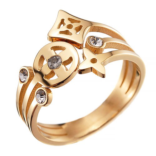 DescriptionThe quintessential LV Monogram floral pattern makes up the beautiful center of this forked 18k yellow gold plated ring