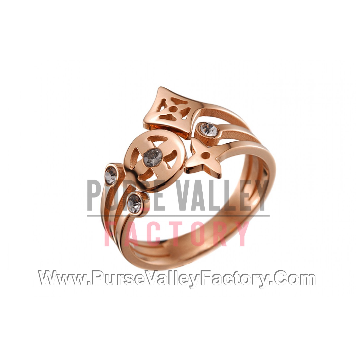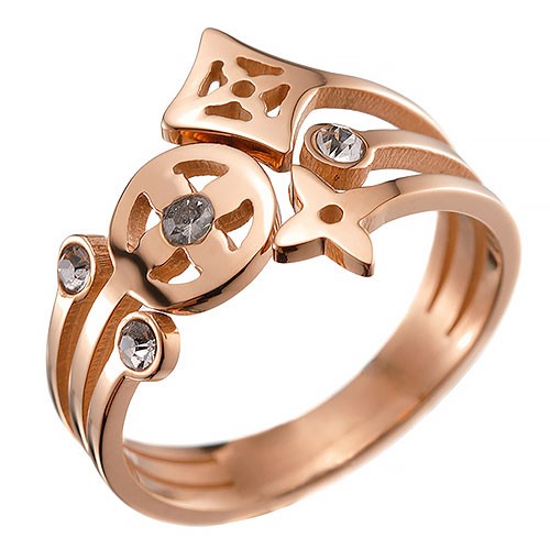 DescriptionCrystal studded LV Monogram forms the striking design of this 18k rose-gold plated tri-band ring