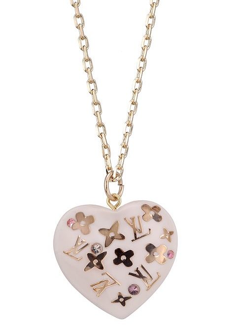 DescriptionThe glossy silver surface of the heart pendant is further beautified by the gold LV Monogram that are heavily scattered on top, lending a brilliant look to this gold fine chain necklace
