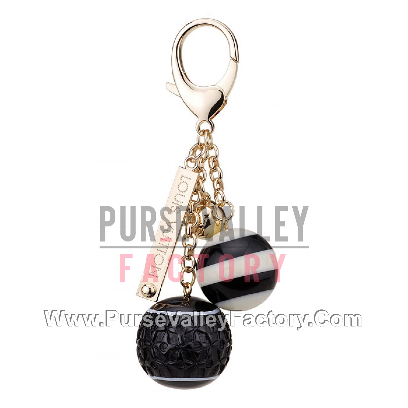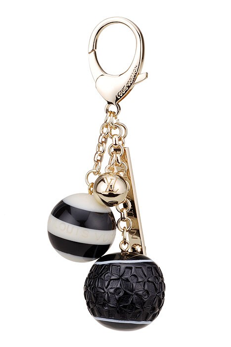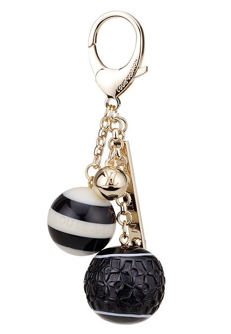DescriptionMonogram, candy and gold ball charms beautify this gold bag charm, offering it an elegant look
