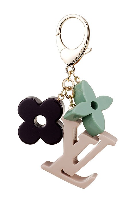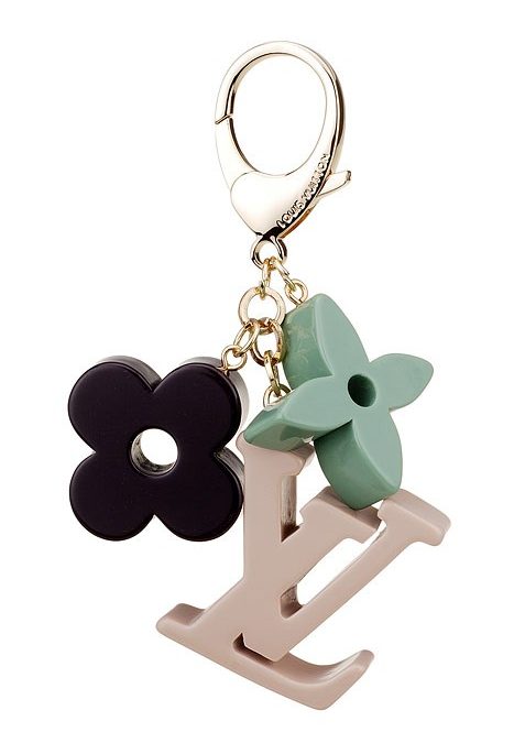 DescriptionA pretty gold keyring with multicolored LV Monogram charm that displays it designer name
