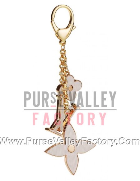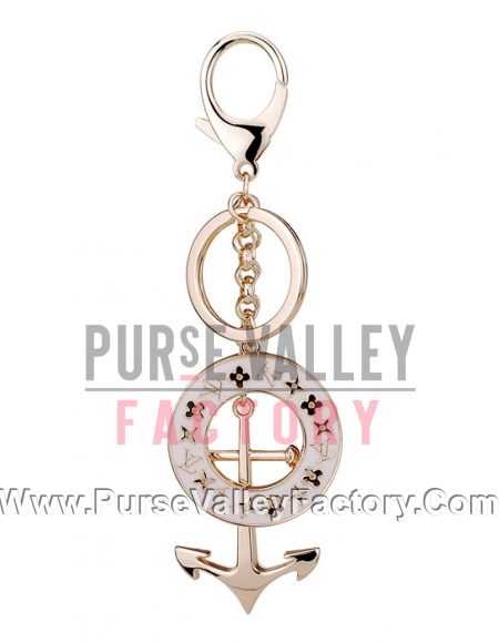 Louis Vuitton Replica White Enameled Classic LV Monogram & Gold Anchor Bag Charm
