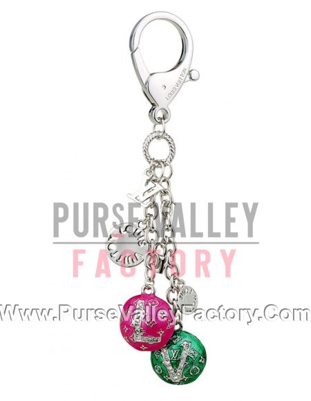 Louis Vuitton Replica Pink & Green Enamel Classic LV Monogram Silver Bag Charm