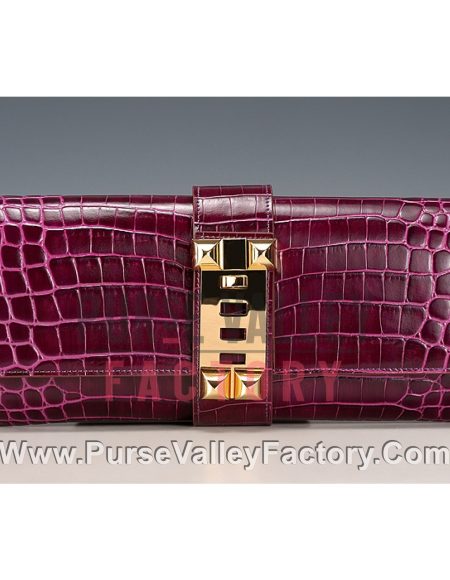 Hermes Medor Crocodile Leather Plum Clutch 18926682