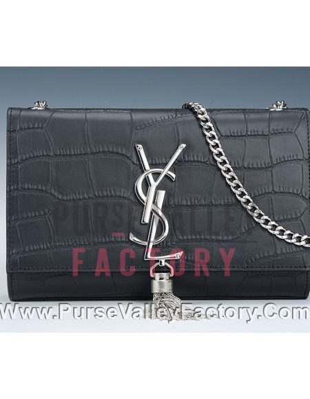 Saint Laurent Croc Stamped Monogram Small Black Bag 18927149