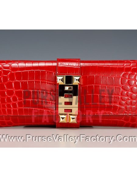 Hermes Medor Crocodile Leather Red Clutch 18926683