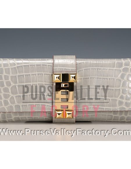 Hermes Medor Crocodile Leather Grey Clutch 18926679