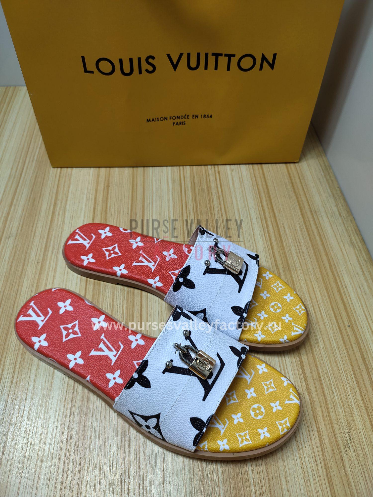 LOUIS VUITTON MULE PLATE LOCK IT WHITE AND RED 1A64MN