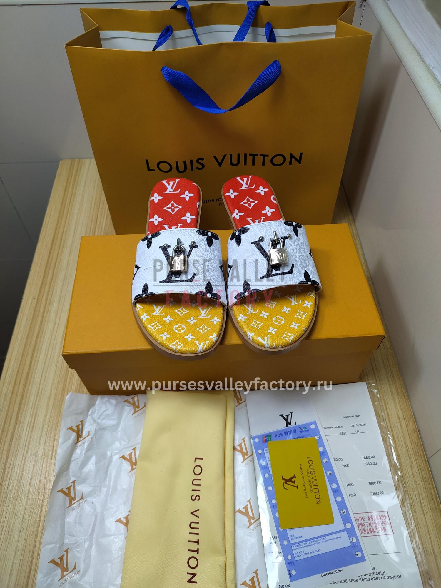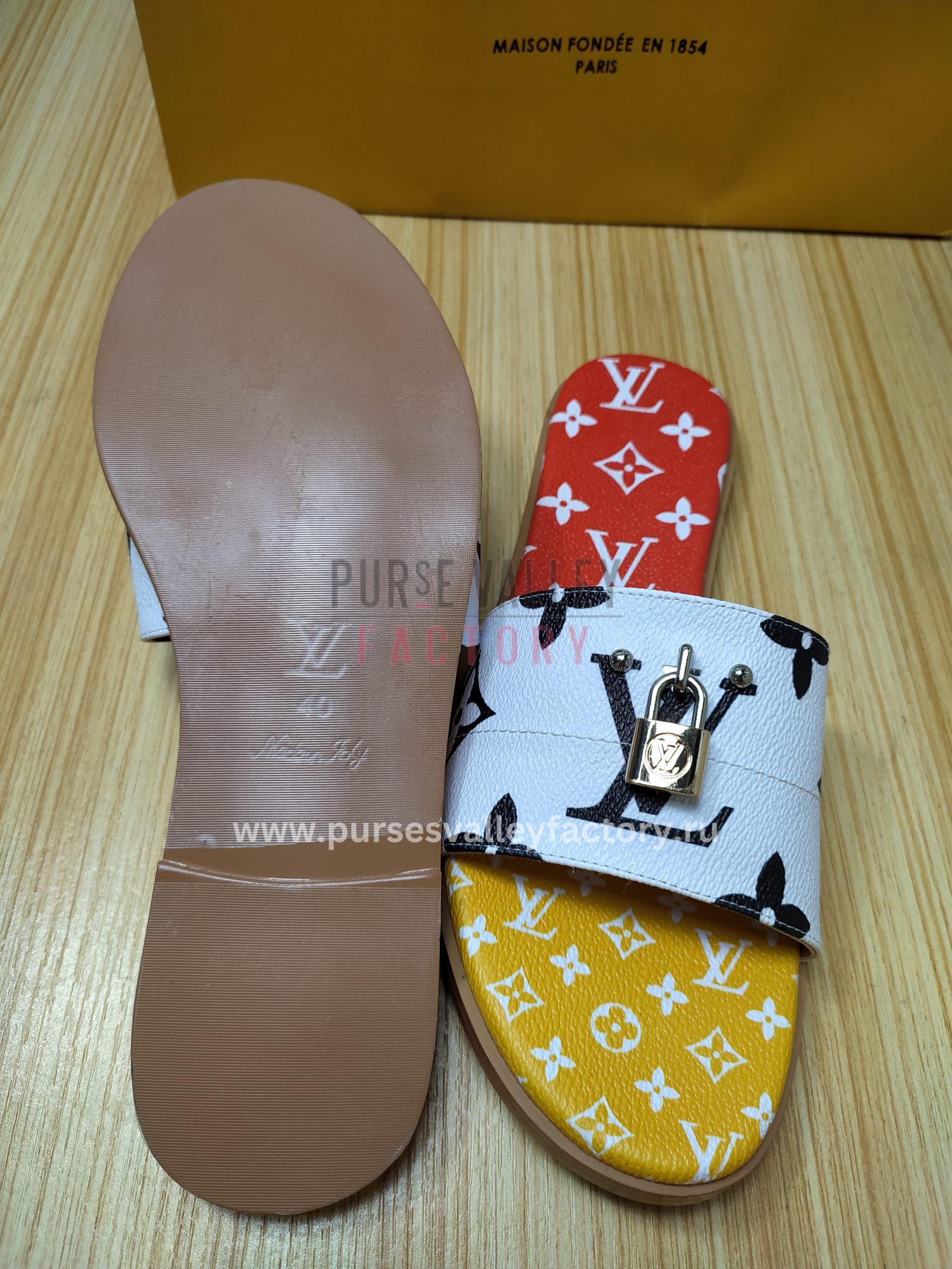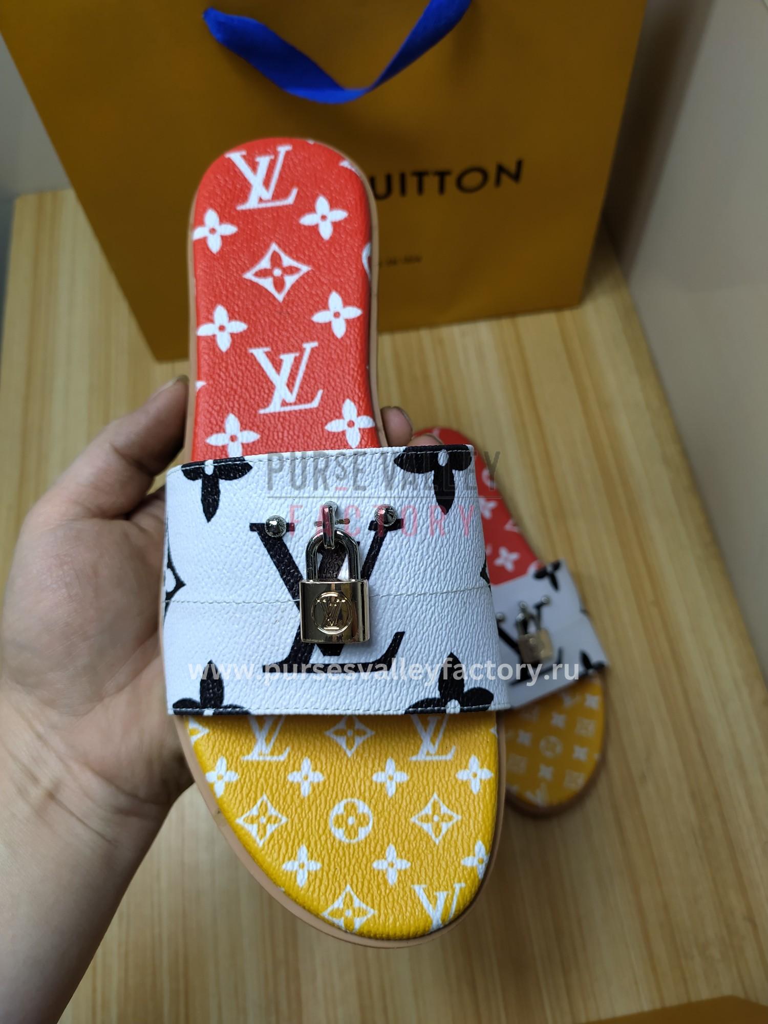 - Embrace bold Parisian elegance with the Louis Vuitton Mule Plate Lock It White and Red, seamlessly blending minimalist design and luxurious comfort. These mules are the perfect choice for fashion-conscious individuals who appreciate understated elegance with a touch of Parisian audacity and a pop of vibrant color. Pair them with tailored trousers and a crisp white shirt for a polished and professional look with an edgy twist, or elevate your favorite denim shorts and a crisp white tee with a touch of effortless chic. The Louis Vuitton Mule Plate Lock It White and Red are destined to become a statement piece in your wardrobe, adding a touch of bold Parisian elegance to every occasion.