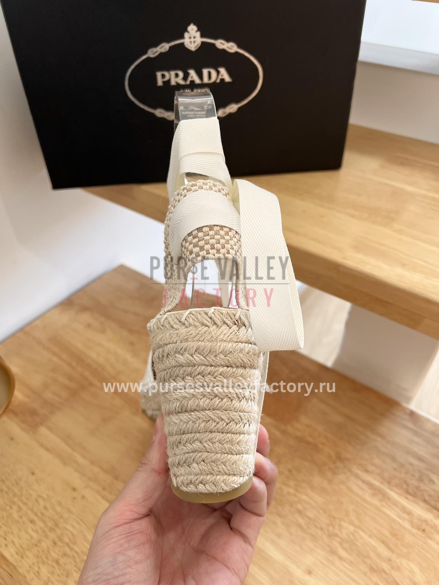 PRADA LINEN ESPADRILLE WEDGE SANDALS WHITE 1IZ045